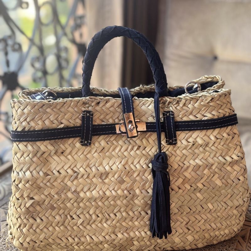Adoptez l’élégance naturelle et bohème avec notre sac panier artisanal en doum, inspiré du Birkin d’Hermès.